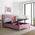 The Kingham is a modern ottoman bed which comes in a range of beautiful colours. A solid frame upholstered in velvet featuring a fully boarded base ideal for storage which can be accessed from the foot end. The contemporary headboard, wooden feet and colour options makes this bed ideal for any bedroom. The low foot end provides a greater sense of space and the sprung slats give fantastic mattress support.