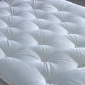 A one sided pocket sprung mattress with a comfort pillowtop. Filled with wool, cotton and silk. With a side stitch border and hand tufted.