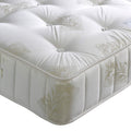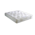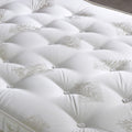 A traditional coil sprung orthopaedic mattress. Hand tufted with a vertical border and a luxury damask fabric. Deep filled with polyester and satin pads.