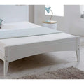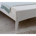 Attractive, brilliant white pine bed Elegant and unique legs for a stunning statement Curved headboard to add softness and flow to the bed Spacious room underneath the bed to fit boxes and bedroom items Soft panel detailing in the headboard for extra character Arrives flat-packed with simple assembly instructions